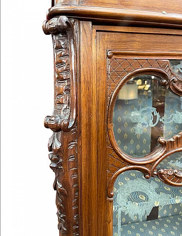 Two-door display case in carved walnut, early 20th century