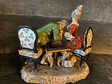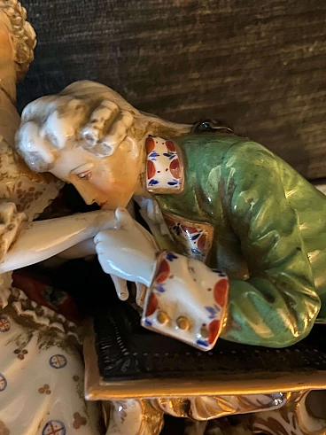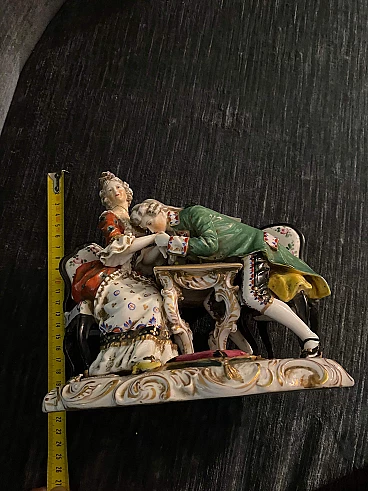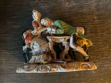 Polychrome porcelain sculpture of a gallant scene, late 19th century