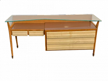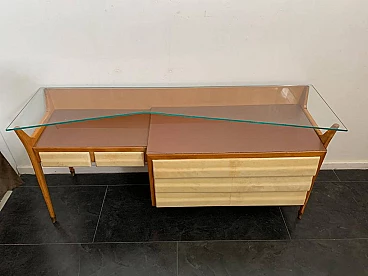 Maple, parchment and glass chest of drawers attributed to Silvio Cavatorta, 1950s