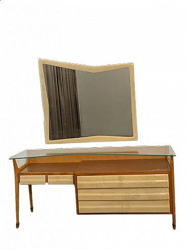 Maple, parchment and glass chest of drawers and mirror attributed to Silvio Cavatorta, 1950s