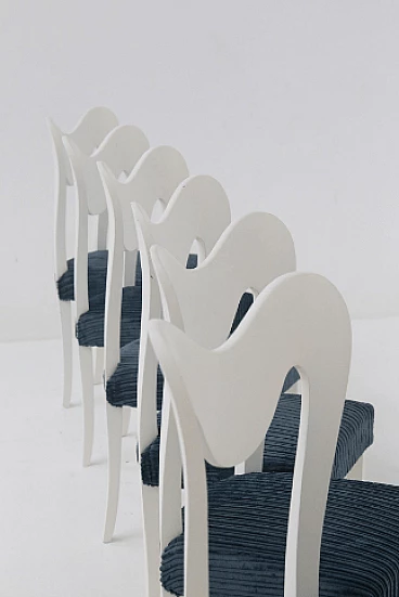 6 Chairs in lacquered wood with velvet seats by Luigi Scremin, 1950s