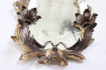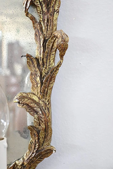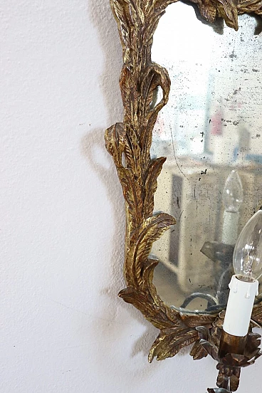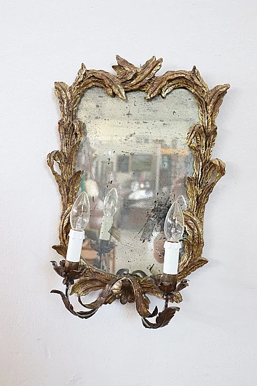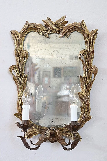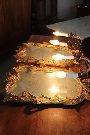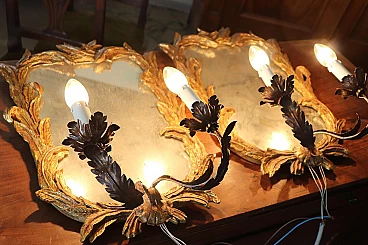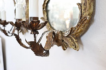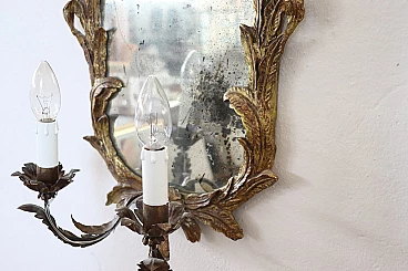 Pair of gilded wooden wall sconces with mirror, 1920s