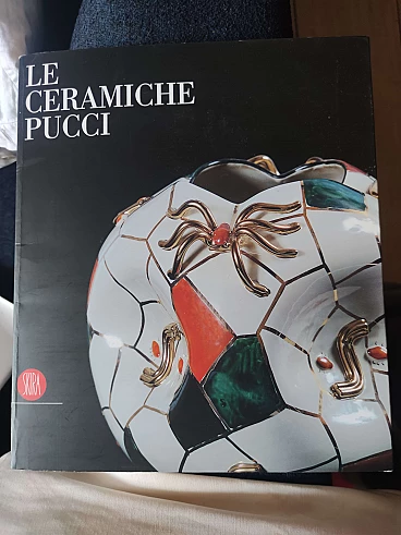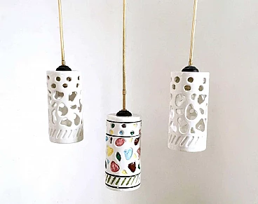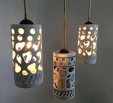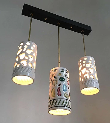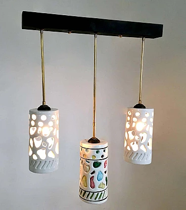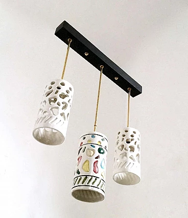Three-light ceramic and metal chandelier by Ceramiche Pucci, 1960s