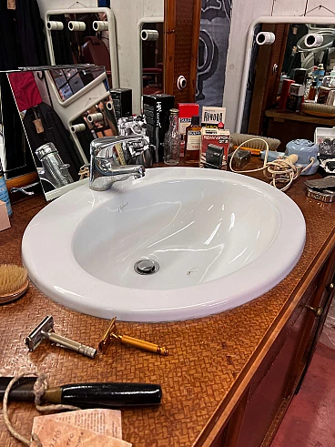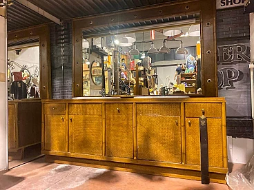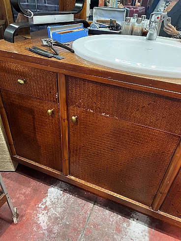 Woven wicker barber's cabinet with washbasin and mirror, 1960s