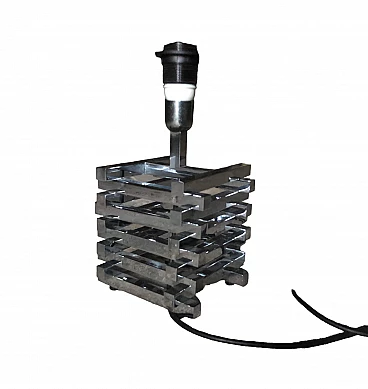 Table lamp made of steel with triangular cap. Overall in good condition.