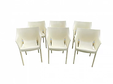Group of six Dr. No chairs by Philippe Starck for Kartell, designed in 1997 and produced in 2002. Structure in anodized aluminum, seat and back in polypropylene. This model is unaffected by temperature excursions and it is possible to stack up to four pieces.