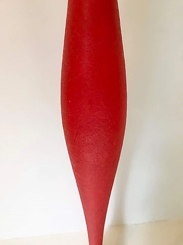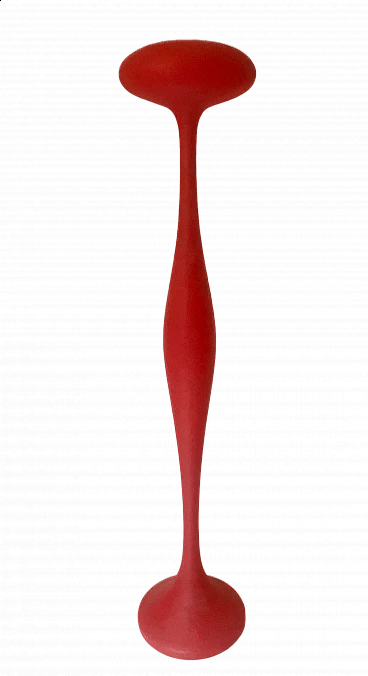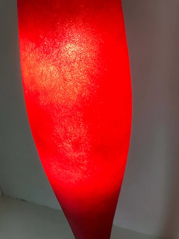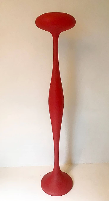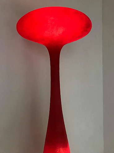 Red ETA floor lamp by Kundalini. The E.T.A floor lamp was designed in 1995 for an exhibition in a gallery in Milan. Kundalini, an Italian lighting manufacturer, started producing the design around 1997. It is completely handmade from eco-friendly fibreglass and is very reminiscent of ET itself. It is a fun object to have around, as well as creating effective and atmospheric lighting thanks to its four dimmable bulbs. The lamp is iconic and has appeared in various exhibitions and museums, for instance at the Milan Triennale and the Museo do Design Lisboa. We believe this lamp was made in the early 2000s. It is in perfect condition, but there are a couple of small dark marks on the 'body' section, see photo. It might be possible to remove them but we do not know for sure.
