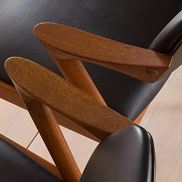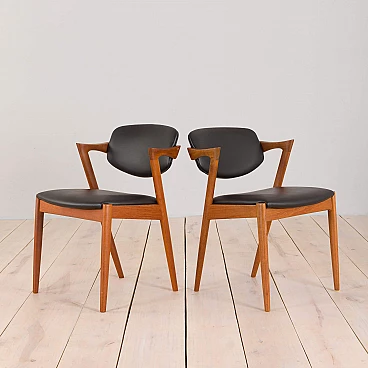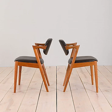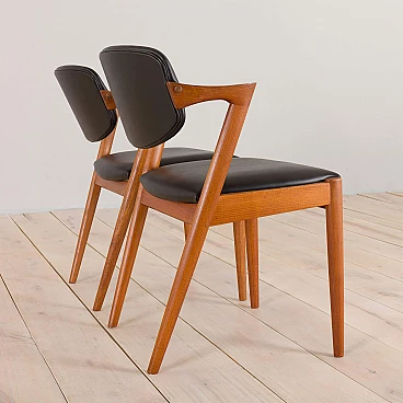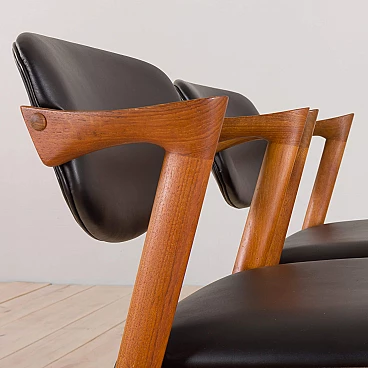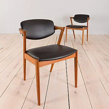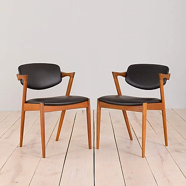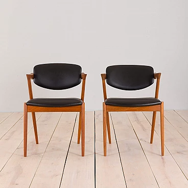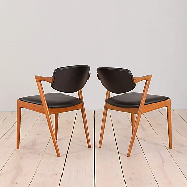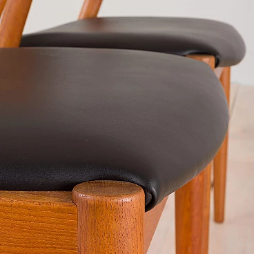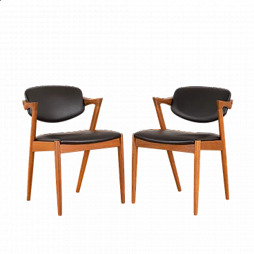 Pair of 42 teak and black leather chairs by Kai Kristiansen for Schou Andersen, 1960s
