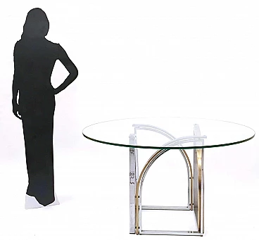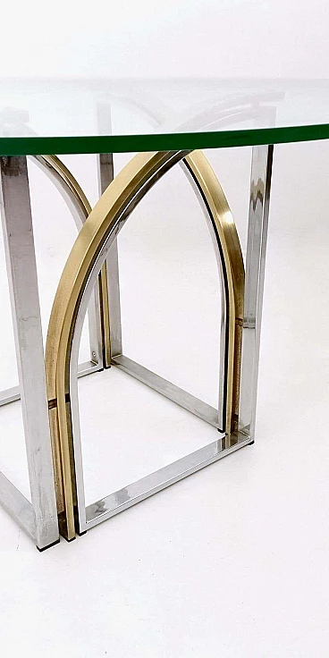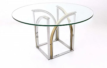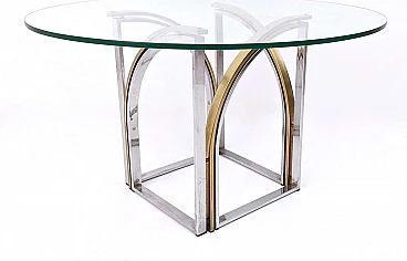 Round brass and steel table with glass top by Romeo Rega, 1970s
