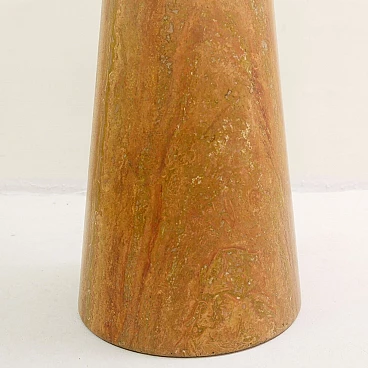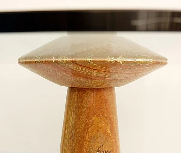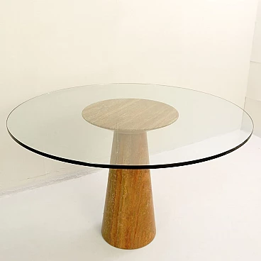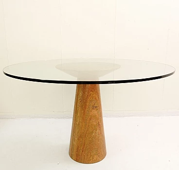 Red Travertine dining table with glass top by Angelo Mangiarotti