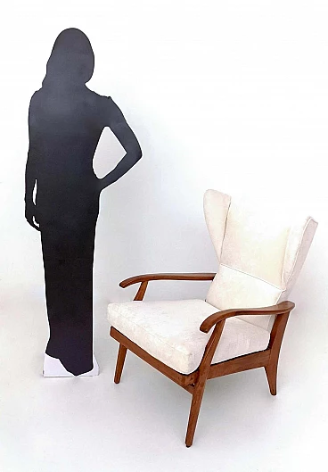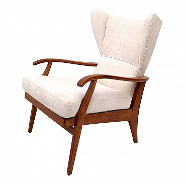 Recliner armchair with cherry frame and velvet upholstery, 1950s