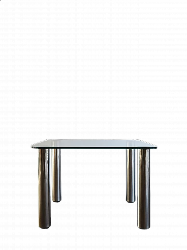 Marcuso table by Marco Zanuso for Zanotta, 1960s. Stainless steel structure and crystal top. Bibliography: Giuliana Gramigna, Repertorio del Design Italiano 1950-2000 per l'arredamento domestico, Vol. 1, p. 192.