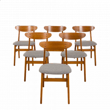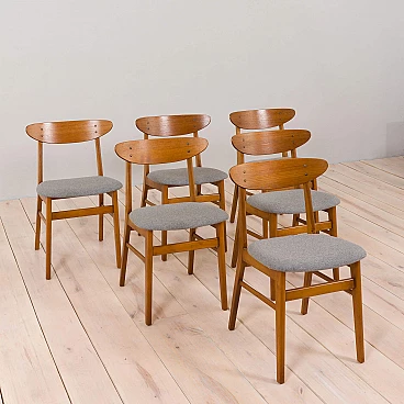 6 Teak and grey wool chairs for Farstrup, 1960s