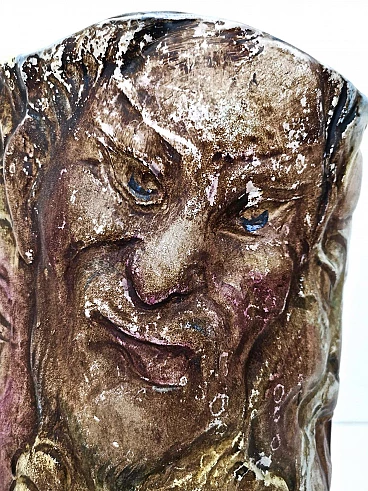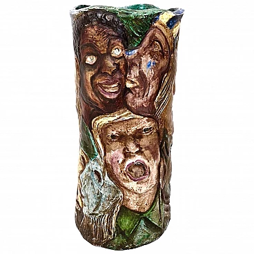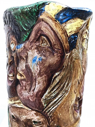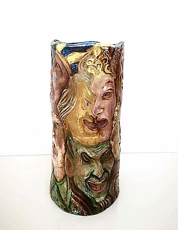 Hand-painted ceramic vase with faces attributable to Tullio d'Albisola, 1960s