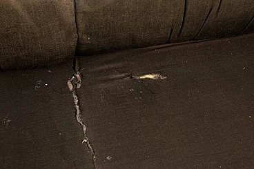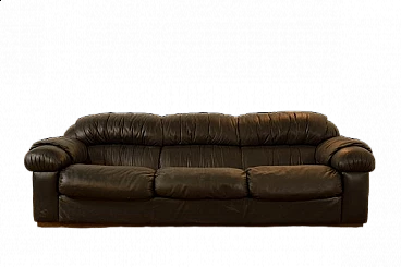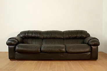 Black leatherette three-seater sofa, 1970s