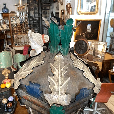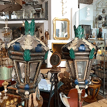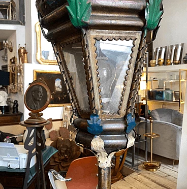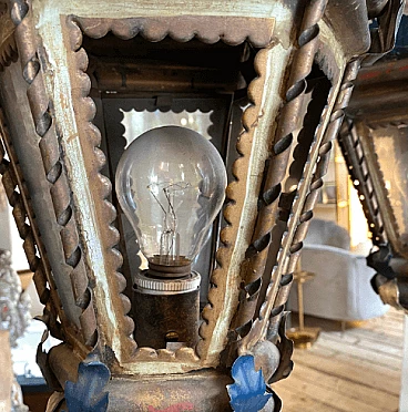 Pair of procession torches in painted wood and iron, mid-19th century