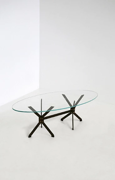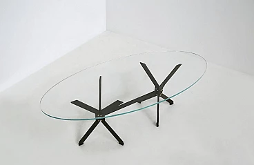 Oval side table in wrought iron and glass by Michele Dal Bon for Le Zoie