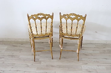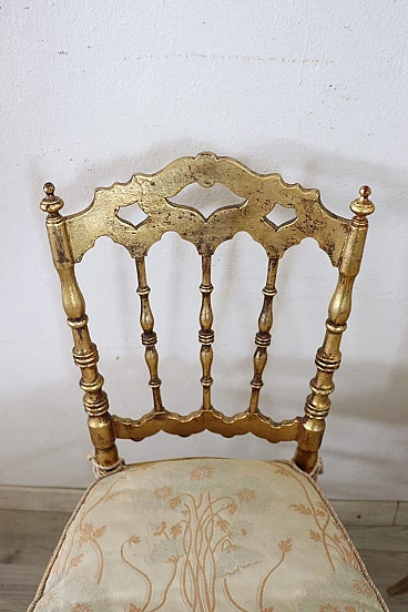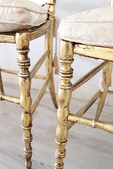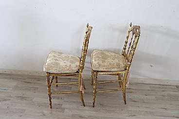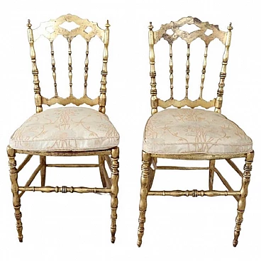 Pair of Chiavarine-type chairs in gilded wood with gold leaf, 19th century