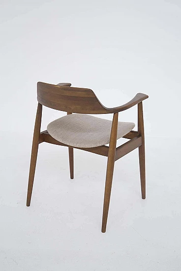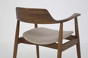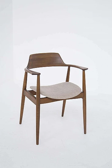 A splendid 1950s American chair attributed to Phillip Lloyd Powell. The chair, made of fine wood and beige fabric, is in original condition and has never been restored. Phillip Lloyd Powell's chair has special features, such as the curved seat resting against the exposed wooden frame and the distinctively shaped wooden back, as seen in the photos. Phillip Lloyd Powell's chair can be used either as a desk chair or as a corner chair and is perfect for any type of room furnished in the fantastic mid-century style.
