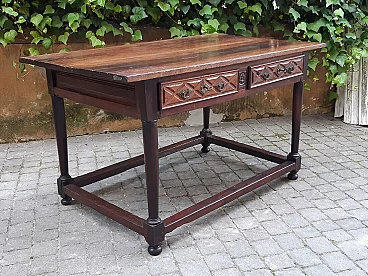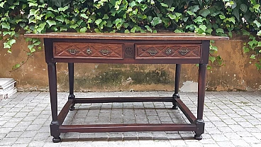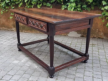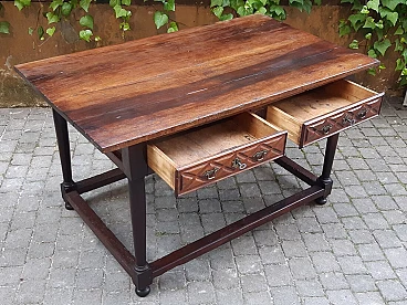 Spanish walnut table with drawers, 17th century