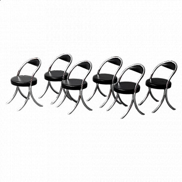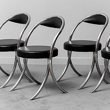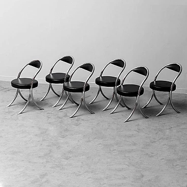 6 Chairs in metal and leatherette in the style of Giotto Stoppino, 1970s