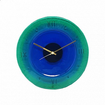 Blue and green Murano glass clock by Ca' dei Vetrai, 1960s. Quartz mechanism by Kienzle. It requires one AA battery.