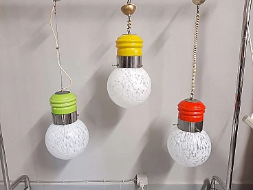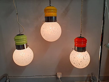 3 Bulb-shaped Murano glass chandeliers, 1970s