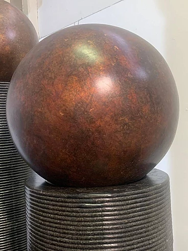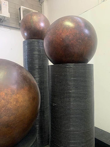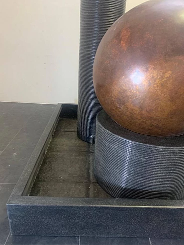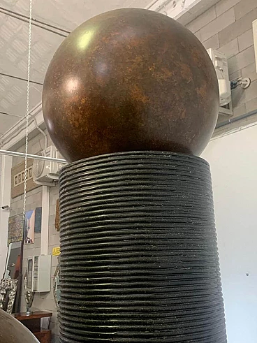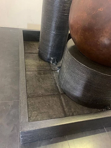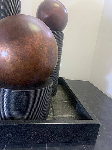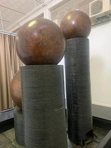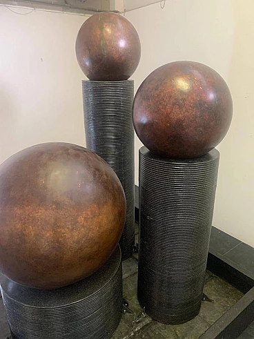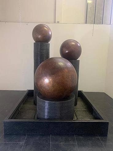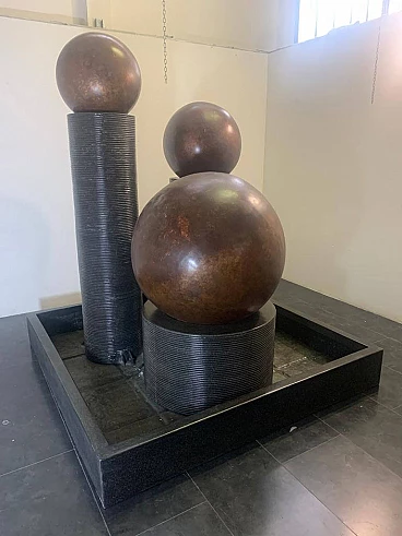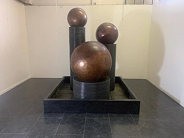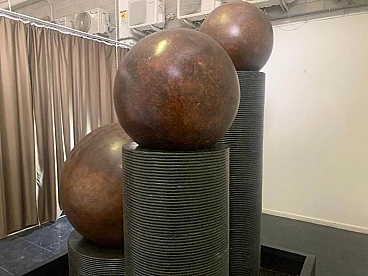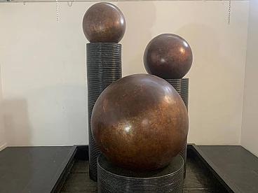 Fibreglass fountain with rotating copper spheres by Ravi Shing, 1990