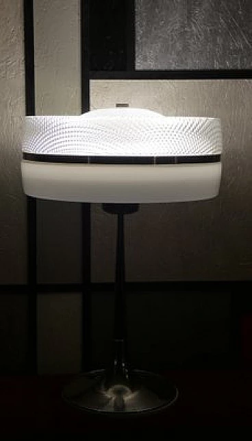 This lamp is a rare example of futurist design as a celebration of the Space Needle skyscraper in Seattle, USA.