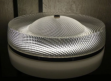 A table lamp made of transparent plexiglass and white multiplex placed on a chrome-plated steel needle base, the light is radiated by a circular LED bulb, replacing the original neon, and an enamelled iron counterweight base. It was created in order to pay homage to the Space Needle, which was designated as a historical monument on 19 April 1999. At the time, it was rightly considered one of the most avant-garde examples of design and construction engineering. The Space Needle, literally space needle, is a tower located in Seattle in the United States and is the main landmark of the city in the Northwest region of the country.