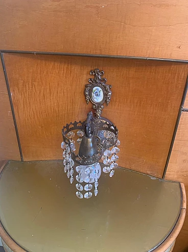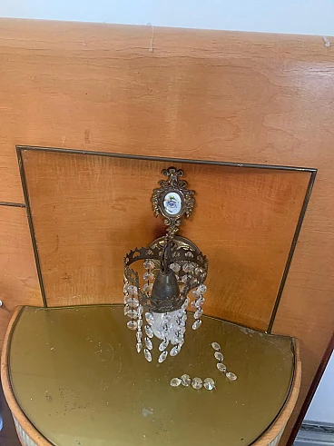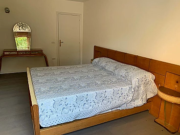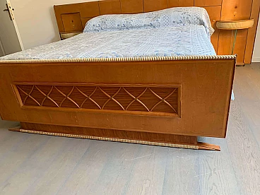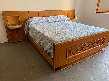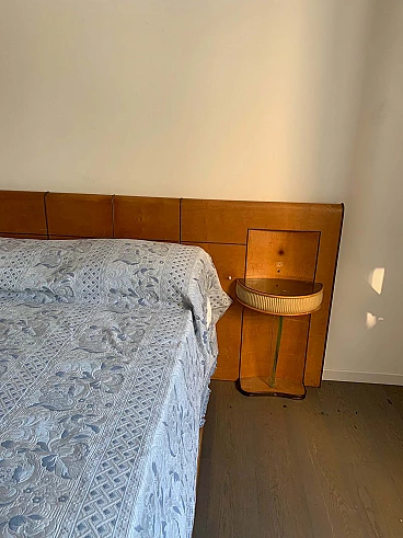 Art Deco bed with hanging nightstands and lamps, 1930s