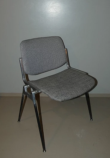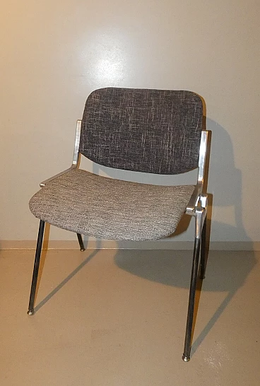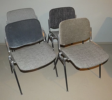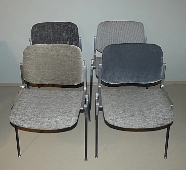 Four chairs manufactured by Anonima Castelli, model DSC 106 designed and produced in Italy in the 1960s. Perfectly restored and upholstered by an upholsterer with heavy cotton fabrics and high-quality velvets in shades of grey. The same fabric was used for all seats, while for the backrests each chair has a different weave.