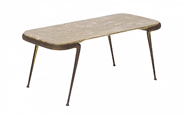 Side table by Cesare Lacca with brass structure and onyx top, 1950s. The brass parts have patina and traces of oxidation due to age.