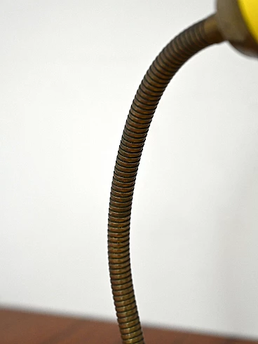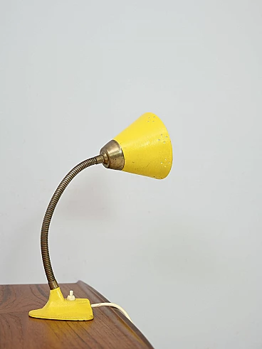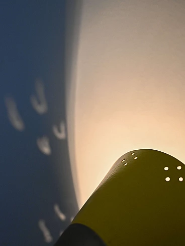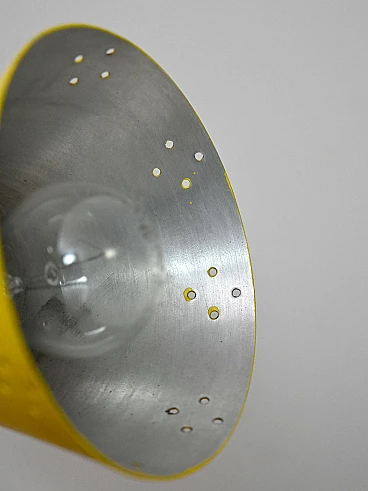 Original Scandinavian vintage abat-jour. This particular lamp traces the mid-century style. It is distinguished by its gilded metal stem and small, geometrically shaped holes in the shade. The yellow colour makes it original. Good vintage condition. The electrical system is original vintage. Please pay attention to the photos.