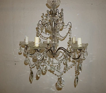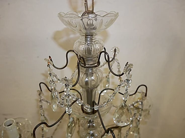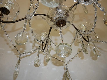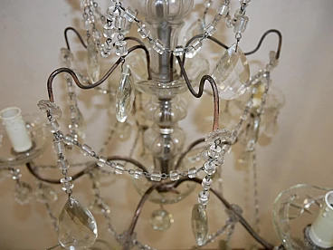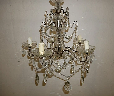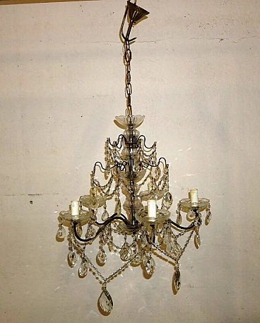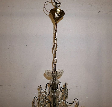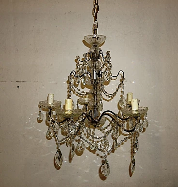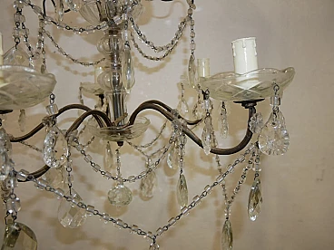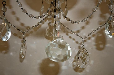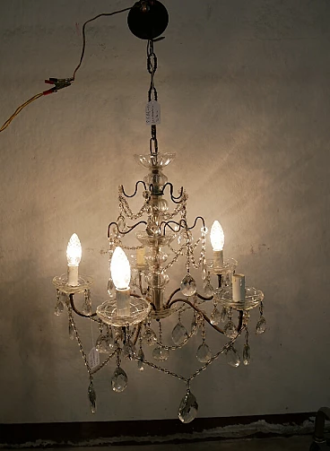 Five-light metal and crystal chandelier, 1940s