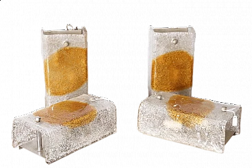 4 Wall lights in frosted Murano glass by Mazzega, 1970s