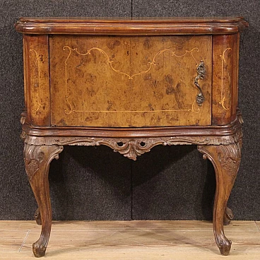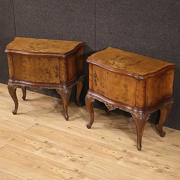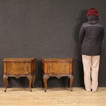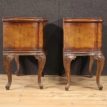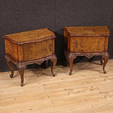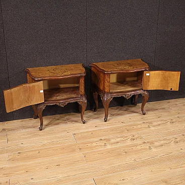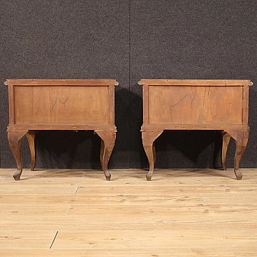 Pair of Chippendale style inlaid wood bedside tables, 1950s