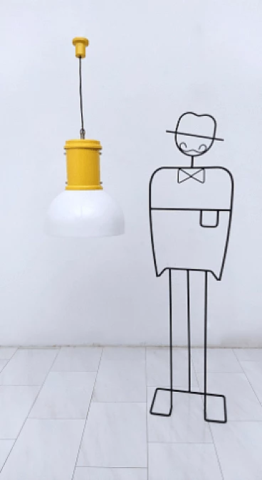 Yellow aluminum and plexiglass hanging lamp, 1970s