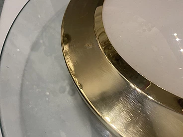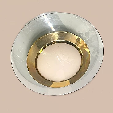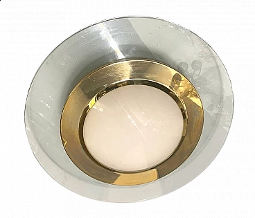 Large recessed ceiling lamp in glass and brass, 1980s-90s. Outer rim of transparent glass, inner part of white opaline glass and brass connecting element. It requires two E27 bulbs. New wiring installed compatible with UK, Europe, USA.