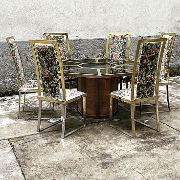 6 Chairs in brass and fabric by Romeo Rega for Sabot, 1970s
