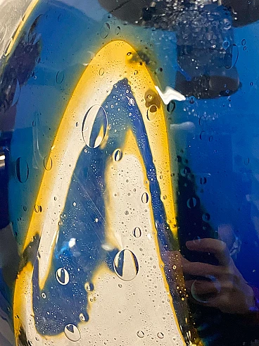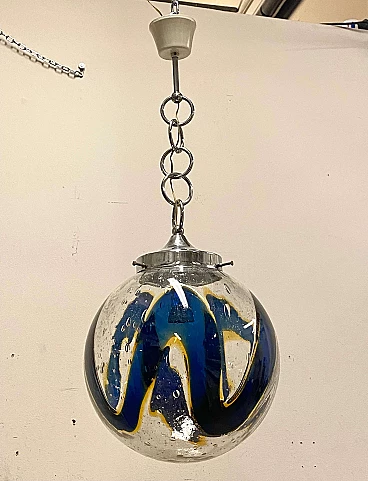 Blue, yellow and transparent Murano glass spherical chandelier, 1970s