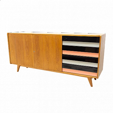 U-460 beech sideboard with coloured drawers by Jirí Jiroutek for Interiér Praha, 1960s