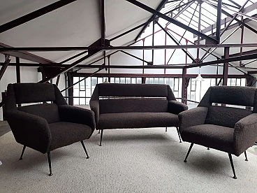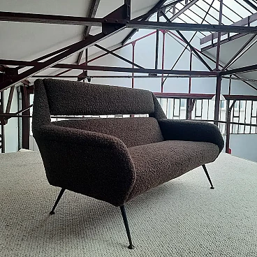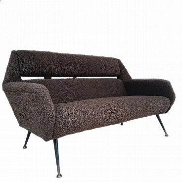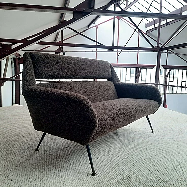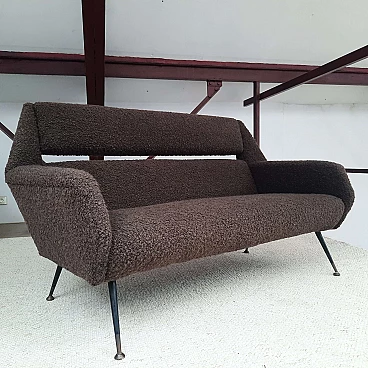 Brown bouclé fabric sofa in the style of Marco Zanuso, 1950s