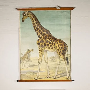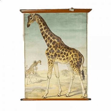 Print on canvas depicting giraffes published by Antonio Vallardi Editore and distributed, mounted on wooden hangers, by Merckelbach & Co. (Amsterdam), 1960s.