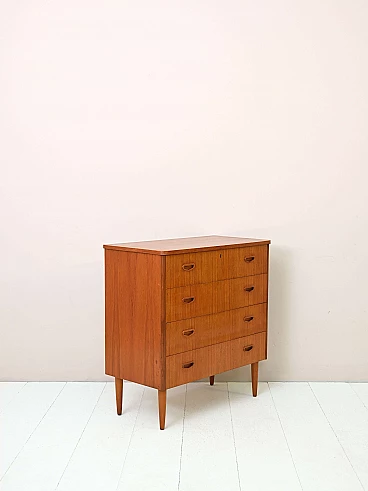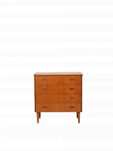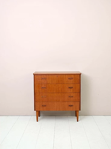 Scandinavian teak dresser, 1960s. Equipped with four drawers, the first of which is lockable. A conservative restoration with products of natural origin has been carried out.