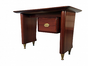 Small writing Desk also named 'dattilo', very well designed by Vittorio Dassi in the 1950s, and usually accompanied by its largest executive desk (see last image). It has solid structure finished and supported by conic brass feet, and equipped with two drawers on right side. It’s in very good conditions of the period, with slight signs of wear consistent with age and gentle use, it has been restored recently and now ready to use.