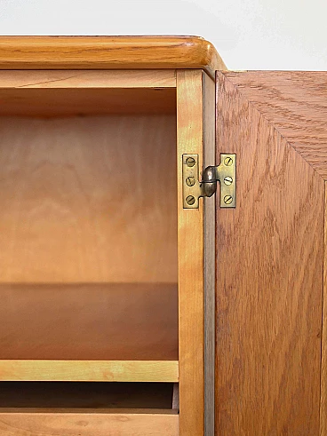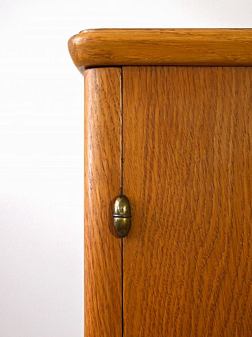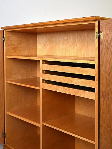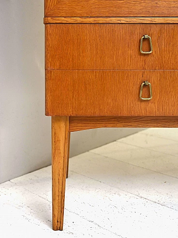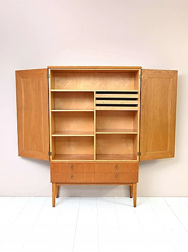 1950s cabinet with shelves and drawers. An original vintage piece of furniture with a retro feel. The shaped doors and gilded drawer handles echo the taste and style of the period. The slender legs slender the structure and give it a modern look. Ideal both as bedroom furniture and as storage furniture for the living room or office. It will make a room unique! Good condition, conservative restoration with natural products has been carried out. It may show some signs of time. Please pay attention to the photos.