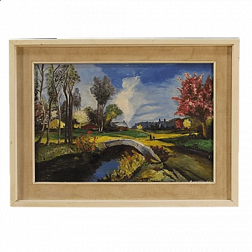 Landscape painting in impressionist style, oil on canvas, 1960s