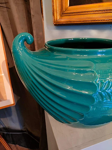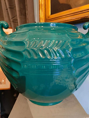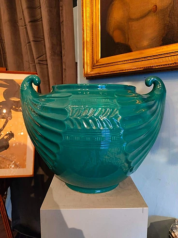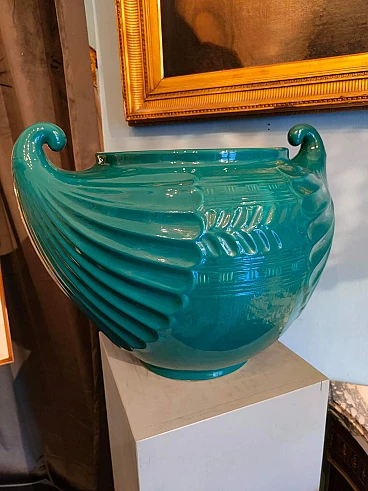 Large ceramic cachepot by Cristofer Dresser for S.C.I, Società ceramica Italiana Laveno. Technique: strong earthenware, mould moulding, polished glaze. Dating from the early 20th century. Dimensions: 41 cm x 57.5 cm.