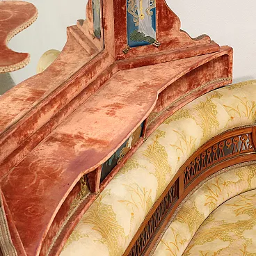 Art Nouveau wood and velvet corner sofa with mirror and shelf, early 20th century